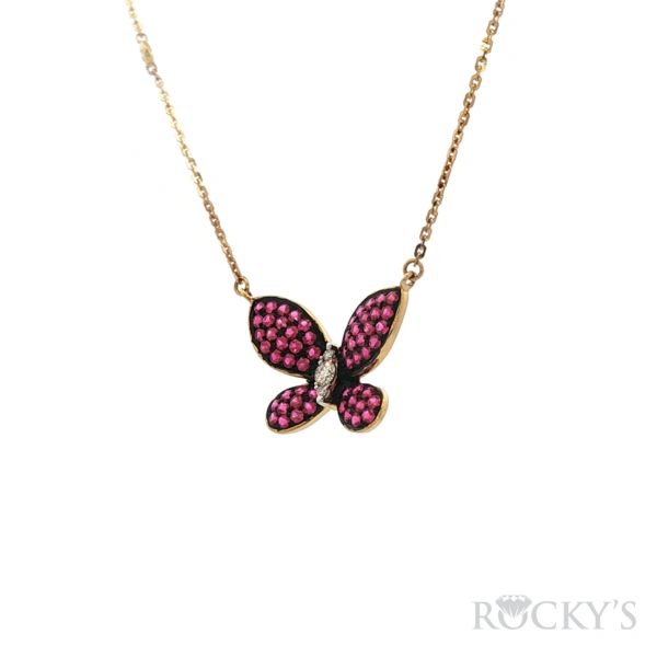 18 Karat yellow Gold Necklace With 58/0.622ctw Round Red Rubies And 7/0.12ctw Round G/H Color & SI Clarity white Diamonds (18kt Yellow Gold 16" Chian Included)