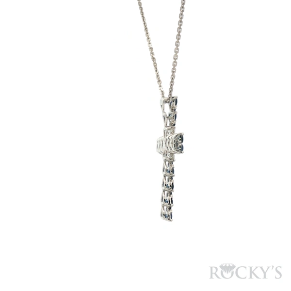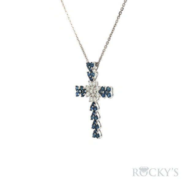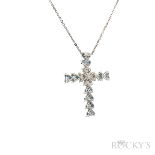 18 Karat White Gold Sapphire Cross Pendant Necklace With 30/0.951ctw Round Blue Sapphires And 12/0.311ctw Round G/H Color & SI Clarity white Diamonds (18kt White Gold 16" Chian Included)