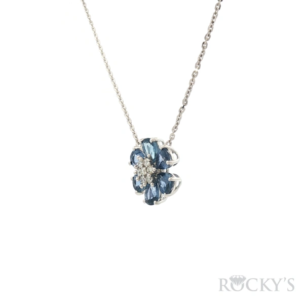 18 Karat White Gold Sapphire Necklace With 6/2.299ctw Pear shape Blue Sapphires And 7/0.127ctw Round G/H Color & SI Clarity white Diamonds (18kt White Gold 16" Chian Included)