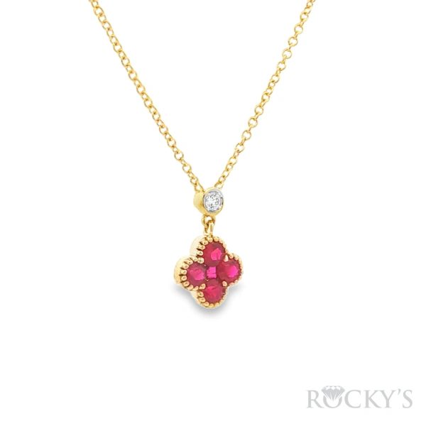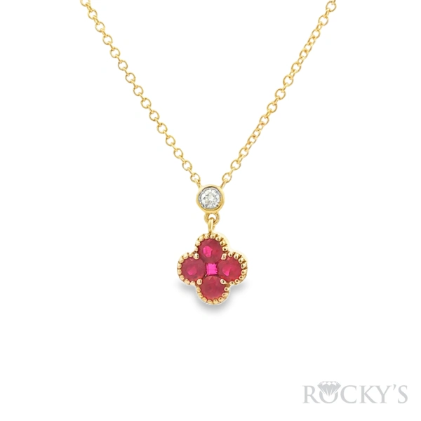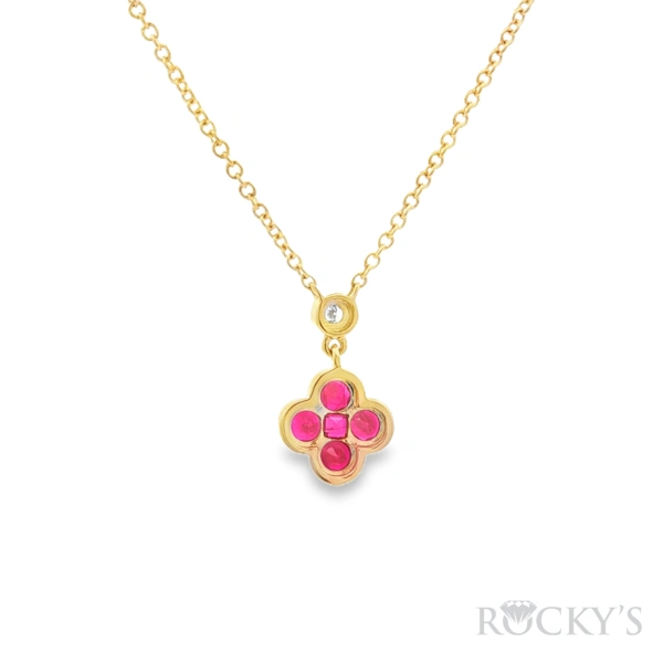 14 Karat Yellow Gold Ruby Necklace with 0.57TWT Round Cut Red Rubies