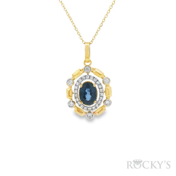 14 Karat Yellow Gold Sapphire Necklace with 1.30TWT Oval Cut Blue Sapphires