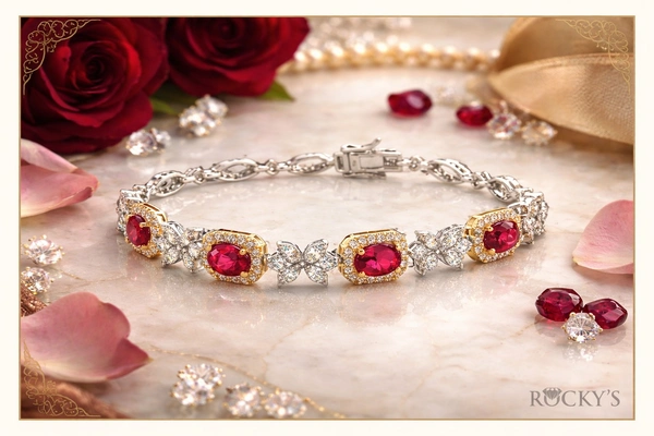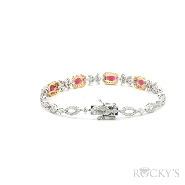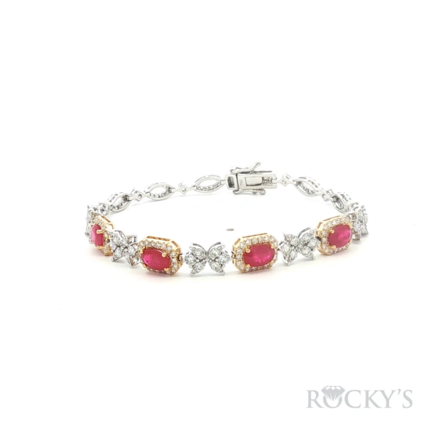18 Karat 2Tone Gold Ruby Bracelet with 4/ 2.295ctw Oval Red Rubies and 254/2.045ctw Round G/H Color & SI Clarity Diamonds, Wrist Size: 6.5