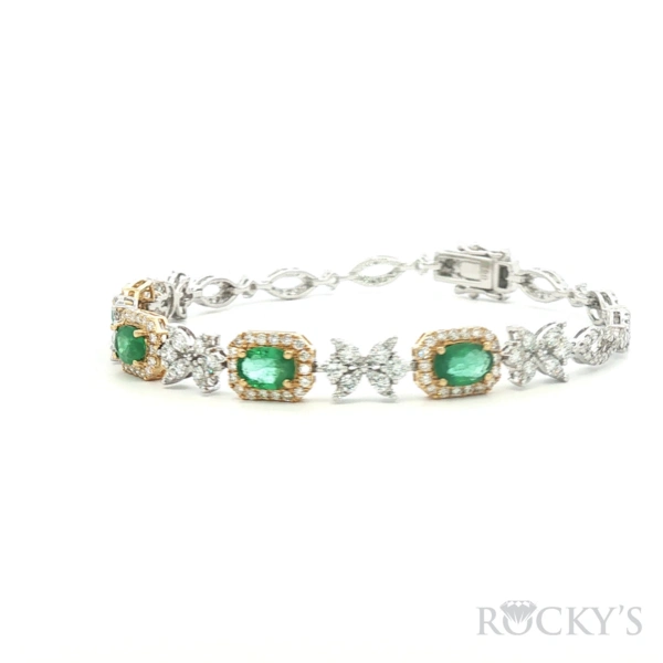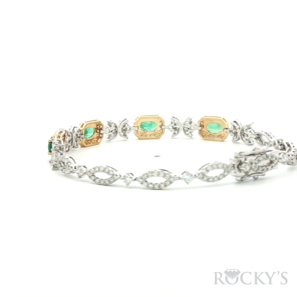 18 Karat 2Tone Gold Color Stone Emerald Bracelet with 254/2.025ctw Round G/H Color & SI Clarity Diamonds and 4/1.645ctw Oval Green Emeralds, Wrist Size: 6.5