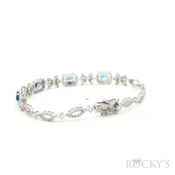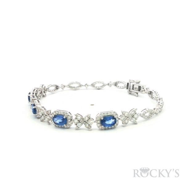 18 Karat White Gold Color Stone Sapphire Bracelet with 254/2.007ctw Round G/H Color & SI Clarity Diamonds and 4/2.508ctw Oval Blue Sapphire, Wrist Size: 6.5
