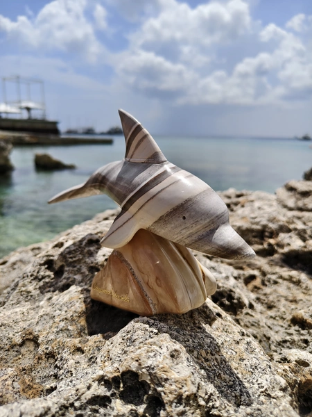 Caymanite Stone Dolphine, Made In Cayman Sculpture: Medium Dolphin