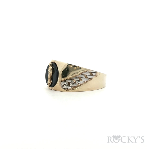 Yellow 10 Karat Mens Black Onex Ring with 4.93Tw Gram weight
