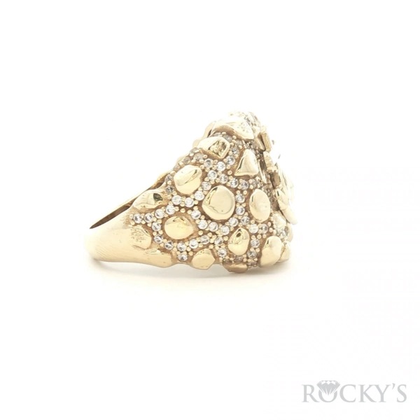 Mens Yellow 10 Karat Nugget Ring, Size 10, Weight 6.64