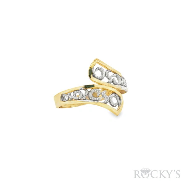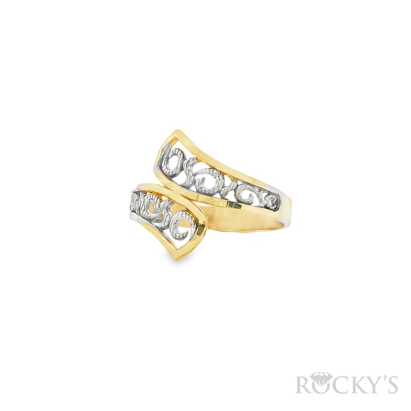 14 Karat 2Tone Gold CZ Fancy Ring, Weight : 1.74, Size 7