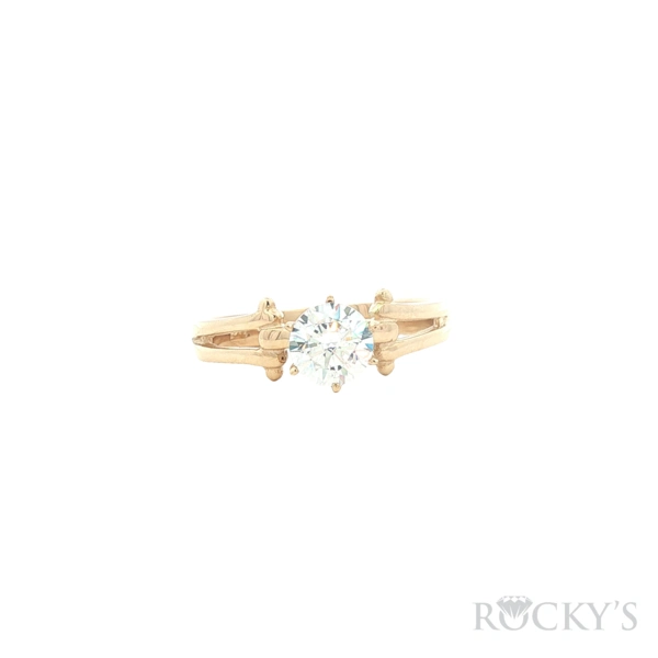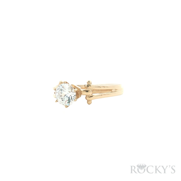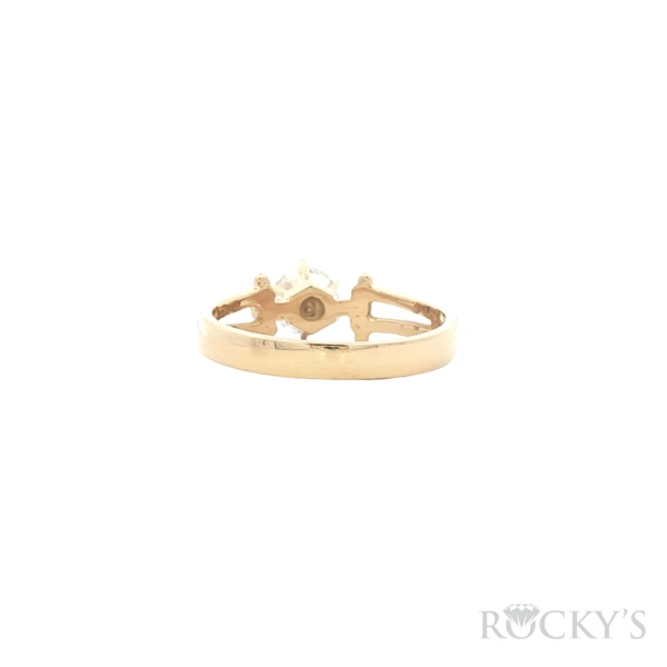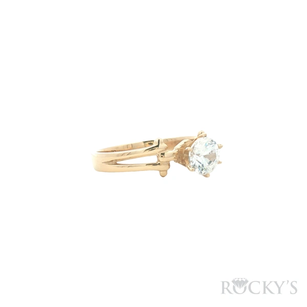 14 Karat Yellow Gold Round CZ Engagement Ring, Weight : 2.66, Size 6.5