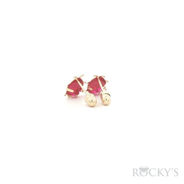 14K Yellow Gold Earrings : 14K Korean Screw back Lady Bug White with Pink ZC