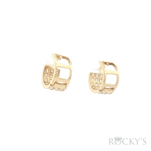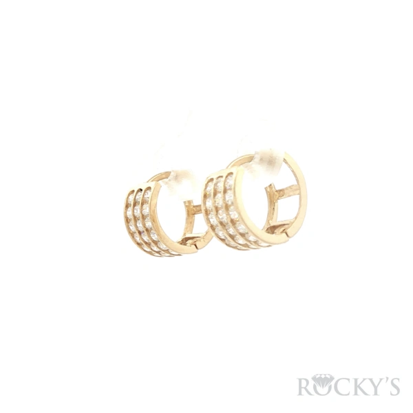 Yellow 14 Karat Earrings : Gold CZ Small size Hoops, Weight 2.12