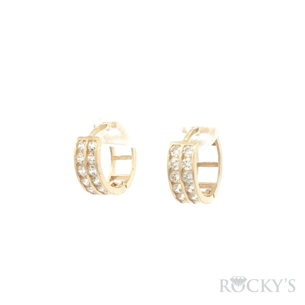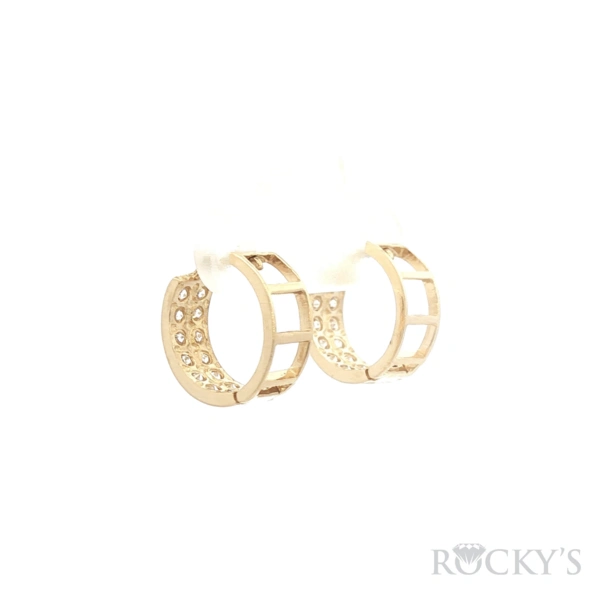 Yellow 14 Karat Earrings : Gold CZ Small size Hoops, Weight 2.07