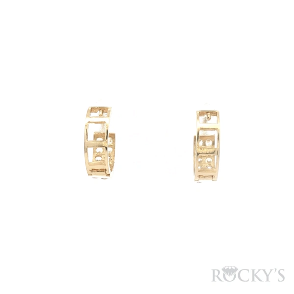 Yellow 14 Karat Earrings : Gold CZ Small size Hoops, Weight 1.40
