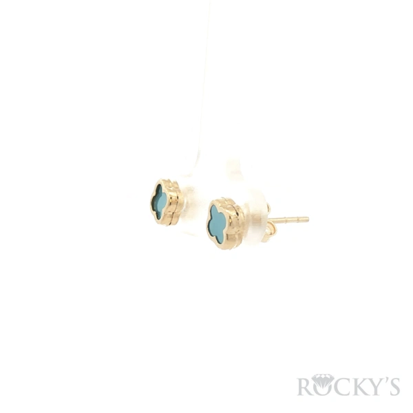 Yellow 14k Clove Extra Small Blue Earrings with 1.09Tw Gram Weight