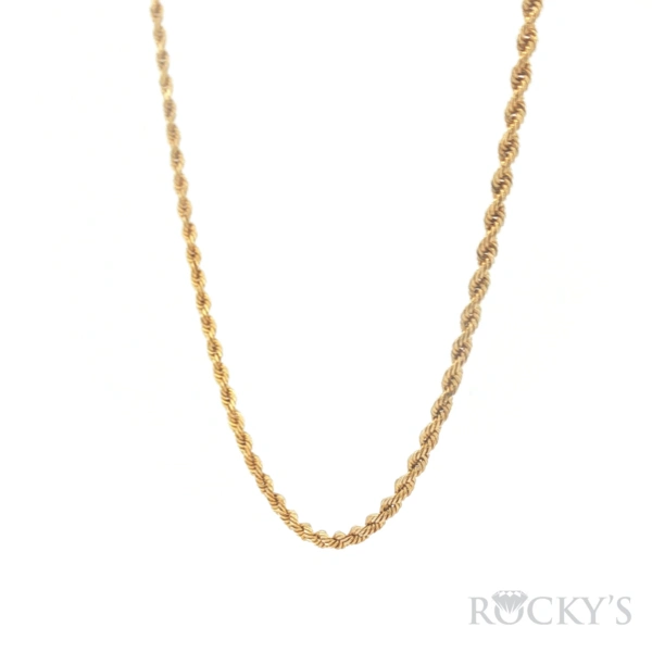 Yellow 10 Karat Solid Gold Diamond Cut Rope Necklace Weight 4.04gms, 1.6mm, 20inches