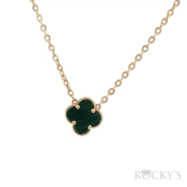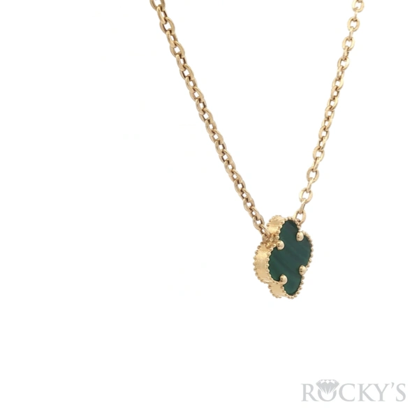 Yellow 14k 1Clove Medium Green Malachite Necklace with 2.73Tw Gram Weight