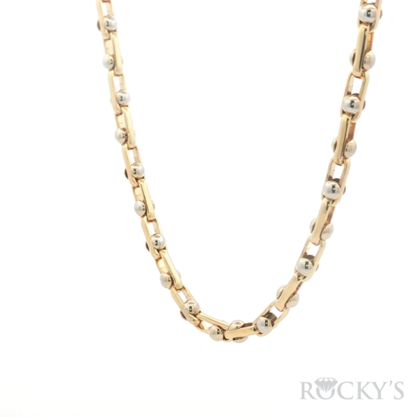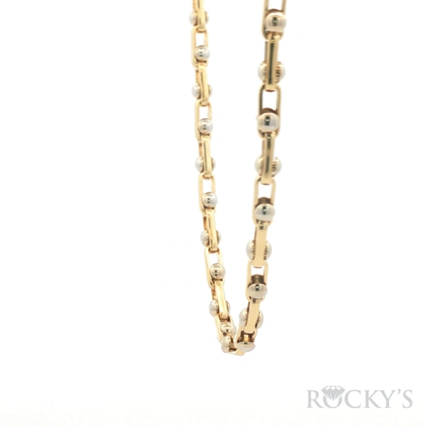 2Tone 14 Karat Cayman Island Ball Link Necklace, Weight 36.74, Length: 22inches, 4mm