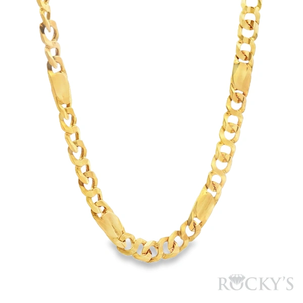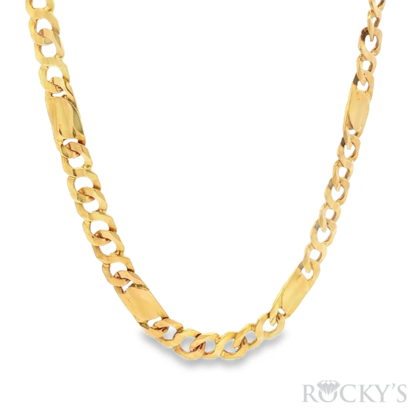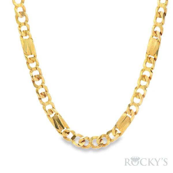 18 Karat Yellow Gold Solid Fancy Cuban Necklace Weight 29.45 Length: 20 Inches, 2.05mm Thickness