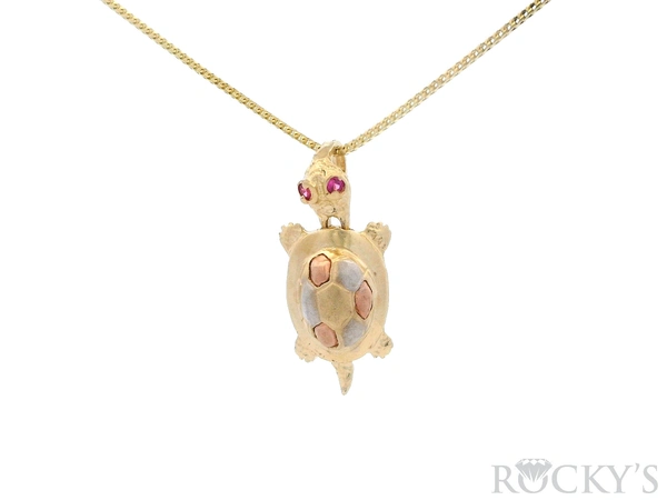 3 Tone 14k Gold Small Turtle Pendent, 2.26grams : Trinity Collection (Chain Excluded)