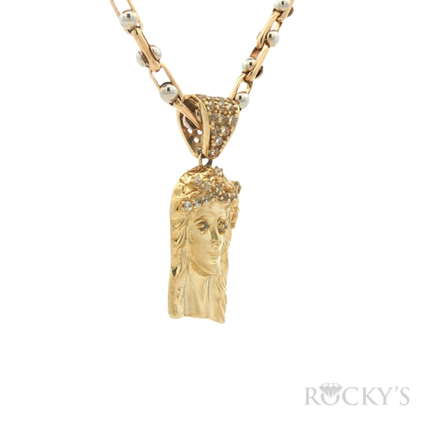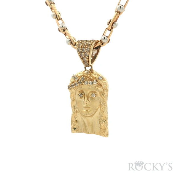 10 Karat Yellow Gold Jesus Head Pendant with CZ's