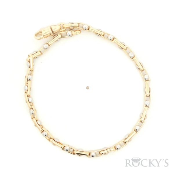 2Tone 14 Karat Cayman Island Ball Link Bracelet, Weight 14.12, Length: 8inches, 4mm