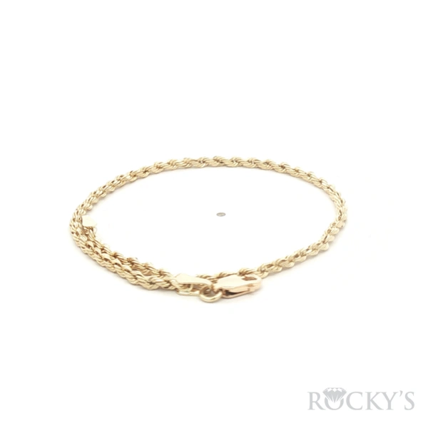 Yellow 10 Karat Solid Rope Link Bracelet Weight 5.39grams, Length: 7.5inches, 3mm