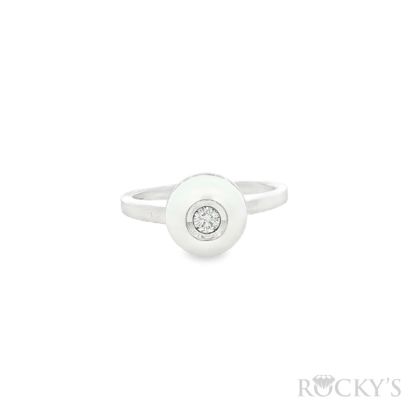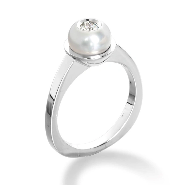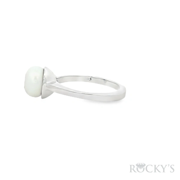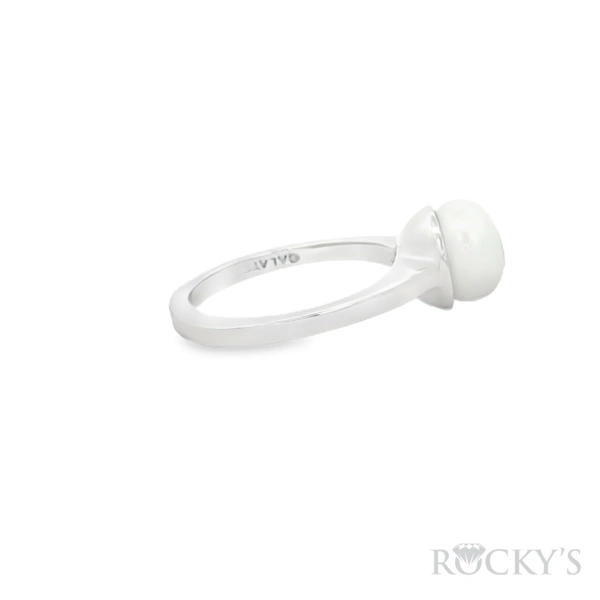 14 Karat Yellow Gold Galatea Jewelry Collection Ring, 8.5mm Fresh Water White Pearl with 0.08ct Round diamond SI Clarity & G/H Color.