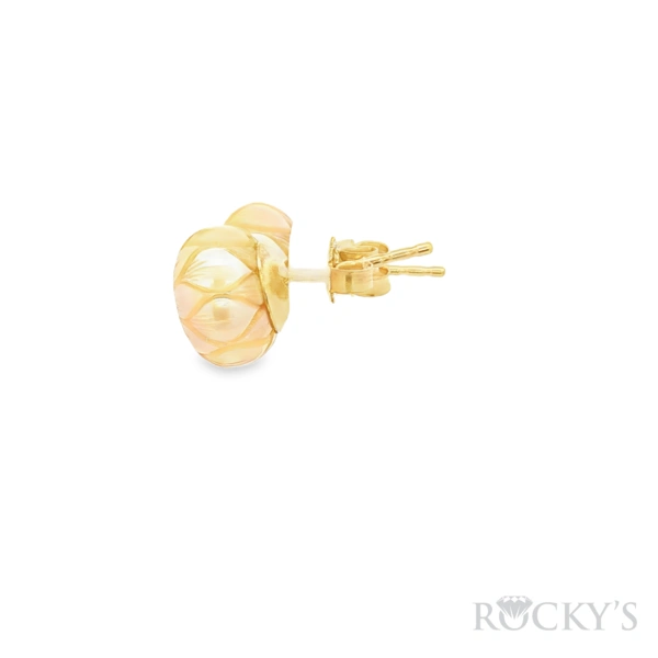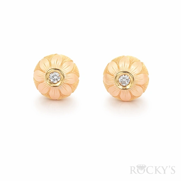 14 Karat Yellow Gold Galatea Jewelry Collection Lucky Daisy Earring, 10mm Fresh Water Peach Pearl with 0.08CT Round Cut G/H Color SI Clarity Diamond.
