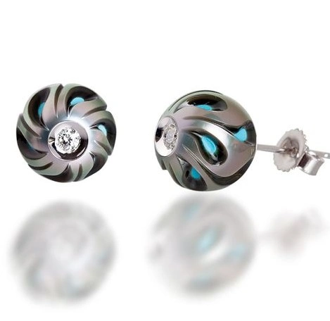 14 Karat White Gold Galatea Jewelry Collection Dew Drop Earring, 9.5mm Galatea Pearl with 0.08CT Round Cut G/H Color SI Clarity Diamond.