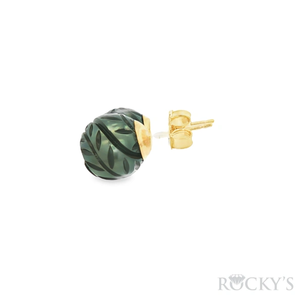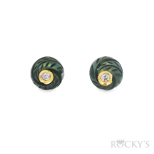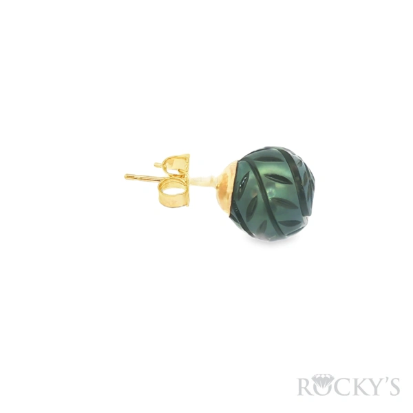 14 Karat Yellow Gold Galatea Jewelry Collection Raven Wings Earring, 9.5mm Tahitian Black Pearl with 0.08CT Round Cut G/H Color SI Clarity Diamond.