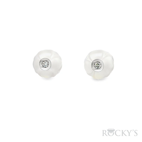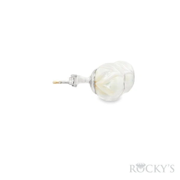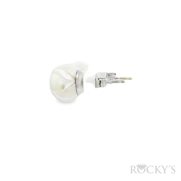 14 Karat White Gold Galatea Jewelry Collection Tulip Earrings, 9.5mm Fresh Water White Pearl with 0.08CT Round Cut G/H Color SI Clarity Diamond.