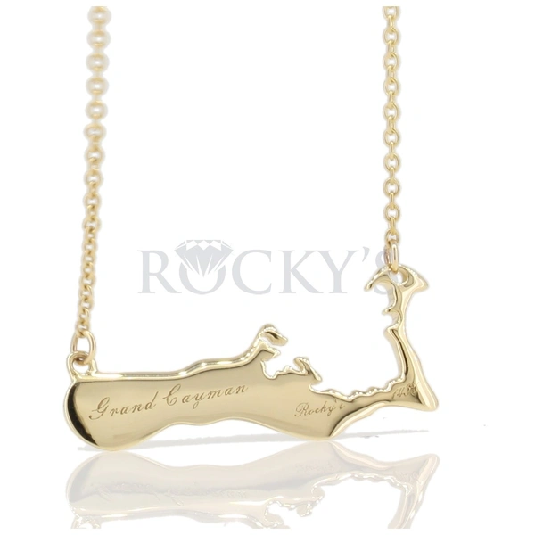 Small Yellow 14k Grand Cayman Map Necklace : Island Inspired Collection : Gold Necklace