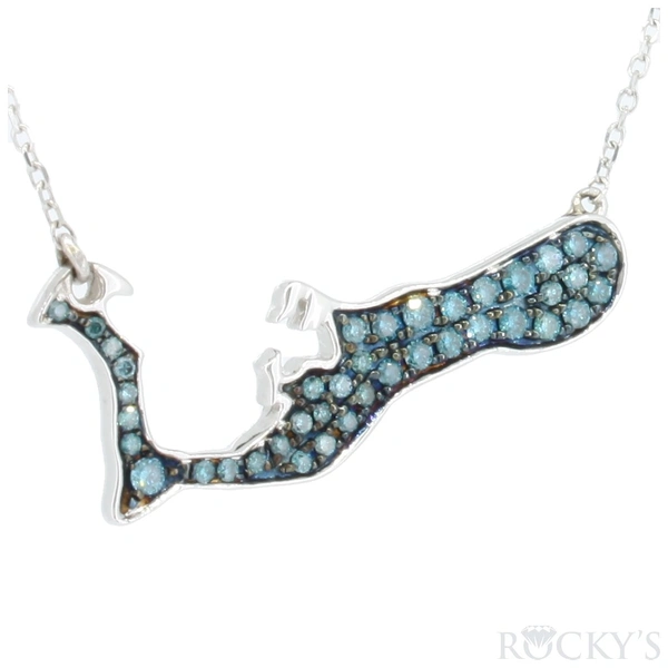 White Medium 14k Grand Cayman Color Diamonds Necklace with 0.24Tw Round GH Color & SI Clarity Blue Diamonds : Island Inspired Collection : Color Diamond Necklace