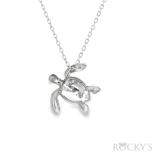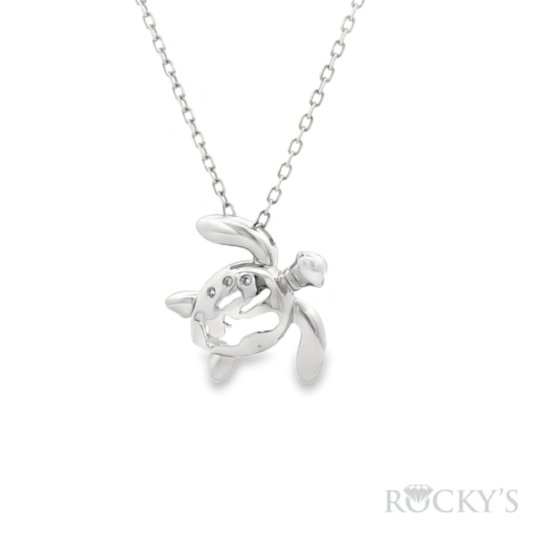 14 Karat White Gold Island Inspired Collection, Cayman Island turtle, Weight 1.70 With 3 /0.05Tw Round G/H SI white Diamonds (Chain Excluded)