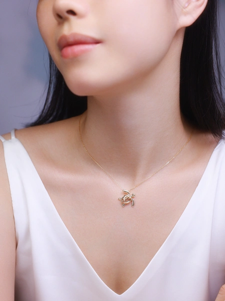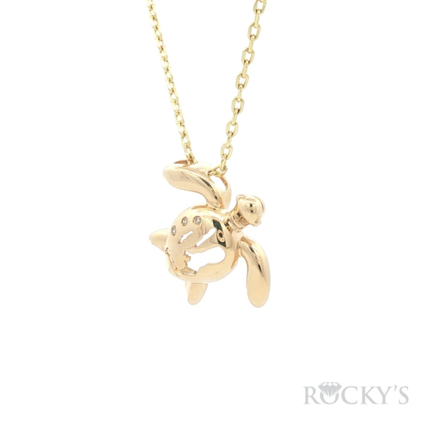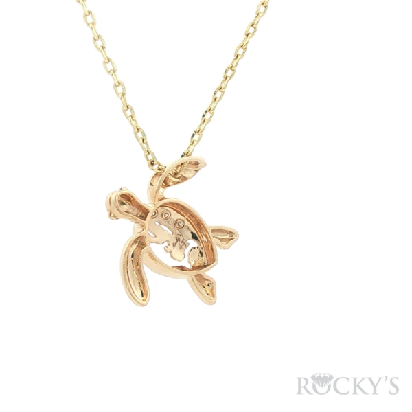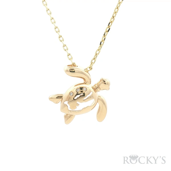 Yellow 14K Island Inspired Collection, Cayman Island turtle, Weight 1.87 With 3 /0.05Tw Round G/H SI white Diamonds (Chain Excluded)