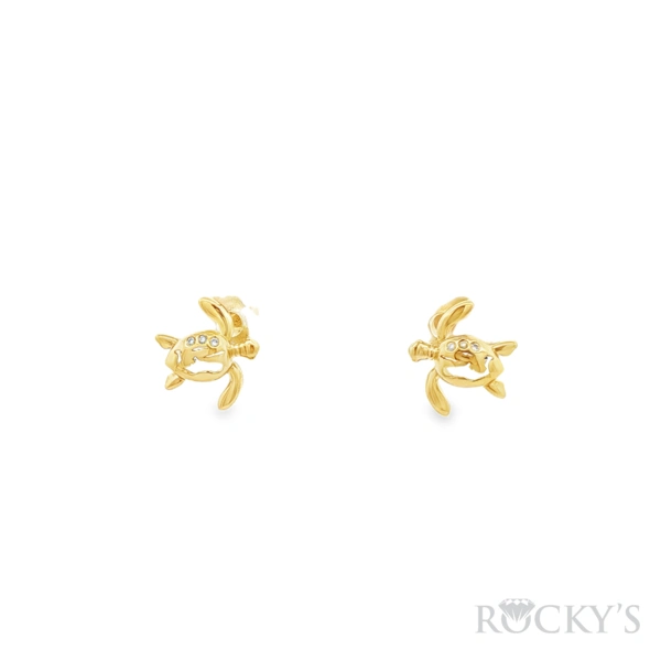 Yellow 14K Island Inspired Collection, Cayman Island turtle Studs, Weight 1.11 With 6 /0.05Tw Round G/H SI white Diamonds