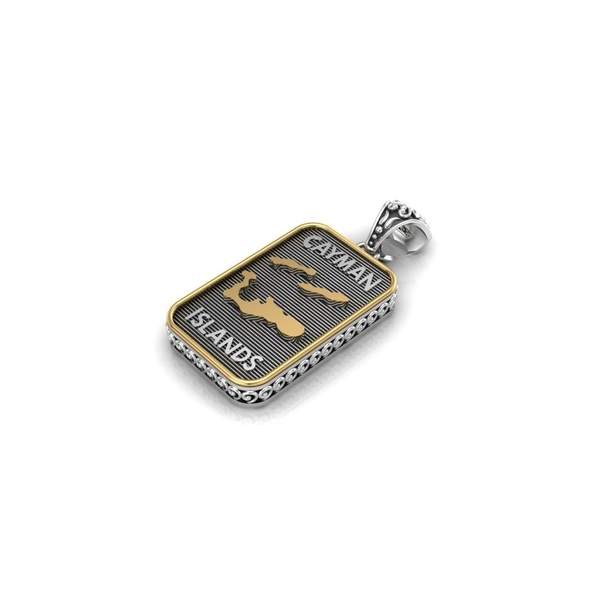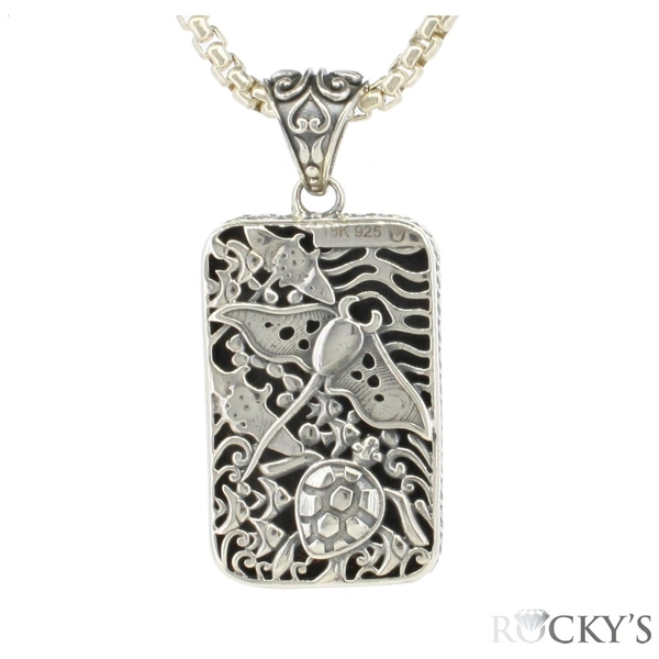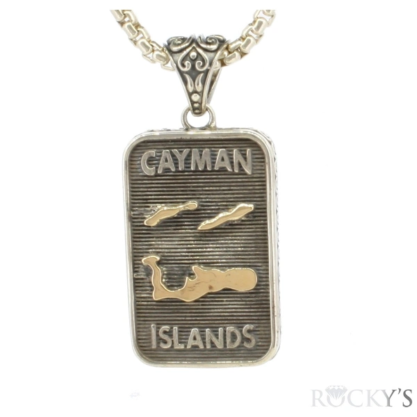 18k Yellow Gold & Sterling Silver Cayman Islands Bali Collection Rectangle Shaped Pendant, Island Inspired Collection