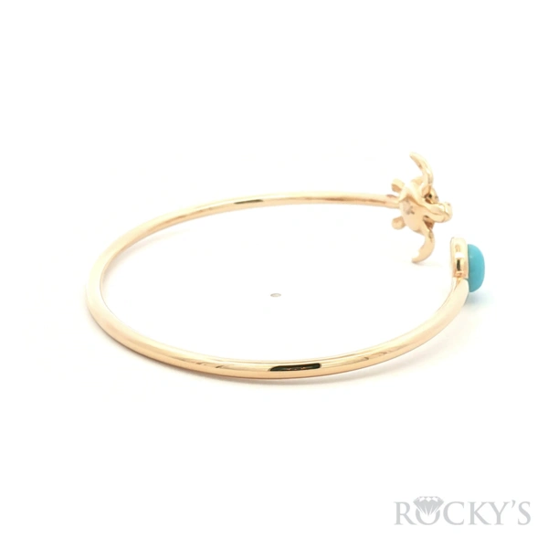 Yellow 14k Turtle Sealife Collection Bangle with 0.42Tw Round Shape Larimar