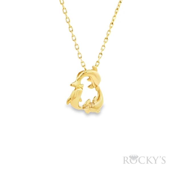 14 Karat Yellow Gold 3C Dolphin Pendant (S) Pendant, Set with 3 Diamond totaling 0.012 ct SI Clarity & G/H Color.