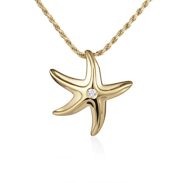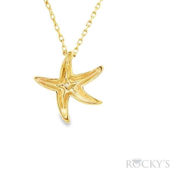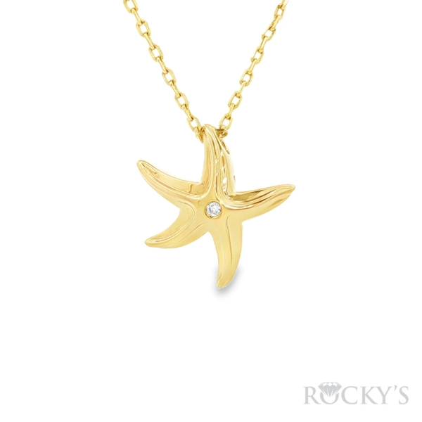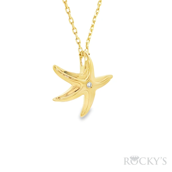 14 Karat Yellow Gold Starfish Pendant, Set with 1 Diamond totaling 0.02 ct SI Clarity & G/H Color.