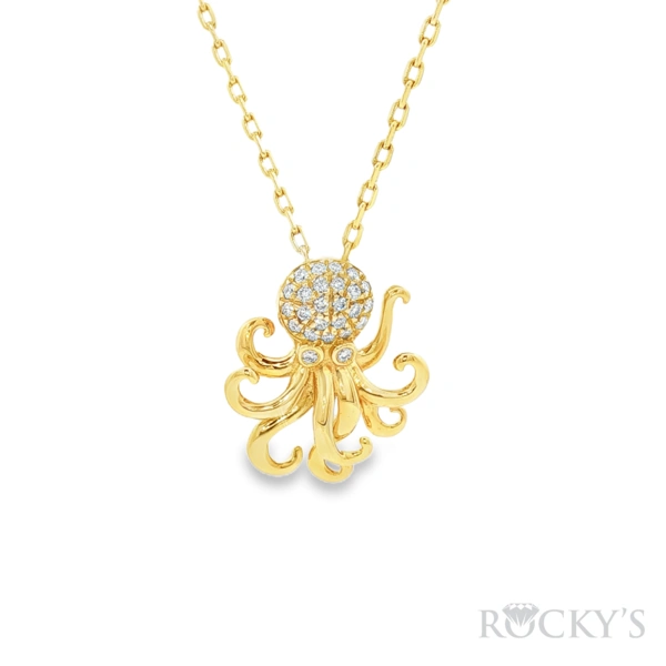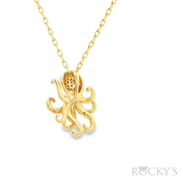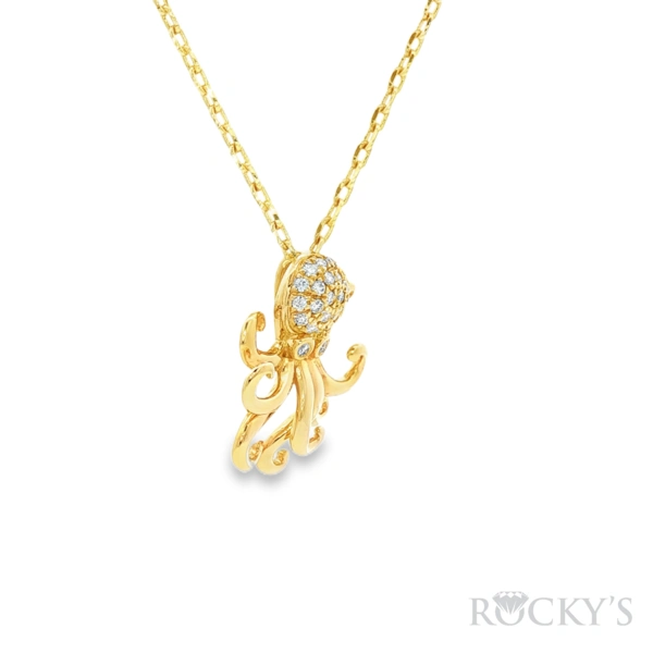 14 Karat Gold Octopus Pendant, Set with 25 Diamond totaling 0.16 ct SI Clarity & G/H Color.