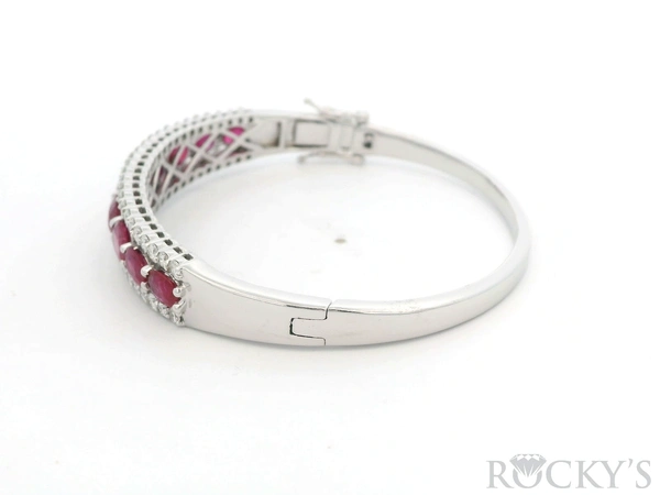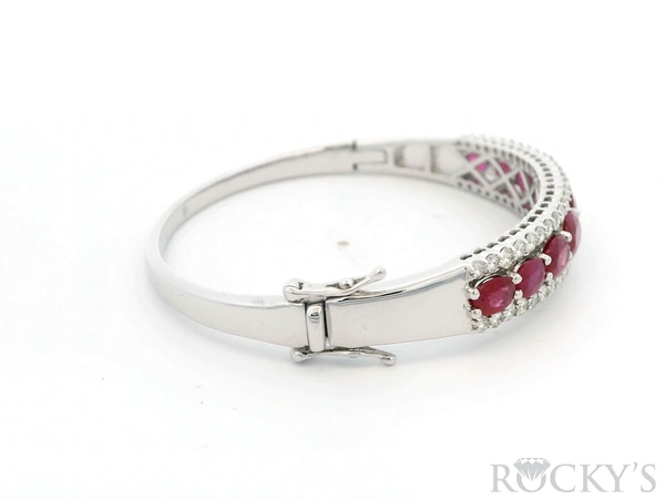 White 14k Ruby Bracelet with 2.35Tw Round Shape Diamond and 8.43Tw Oval Shap e Ruby