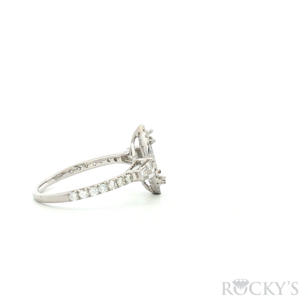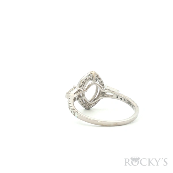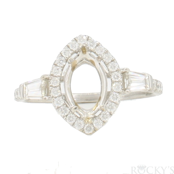 White 14k Diamond Semi Mount Ring with 0.42Tw Round Shape Diamond and 0.40Tw Baguette D iamond