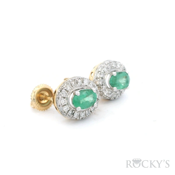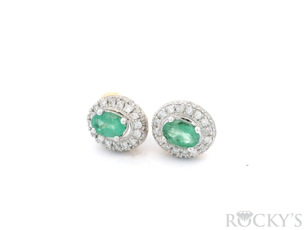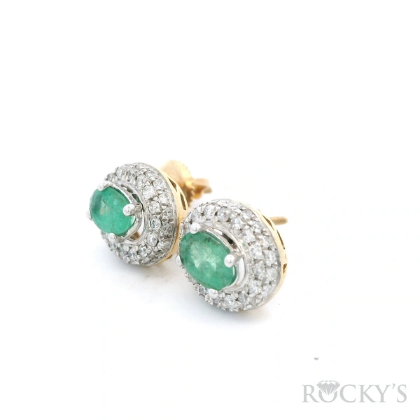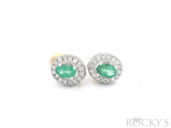 White 14k Emerald Earring with 0.56Tw Round Shape Diamond and 0.98Tw Oval Sh ape Emerald